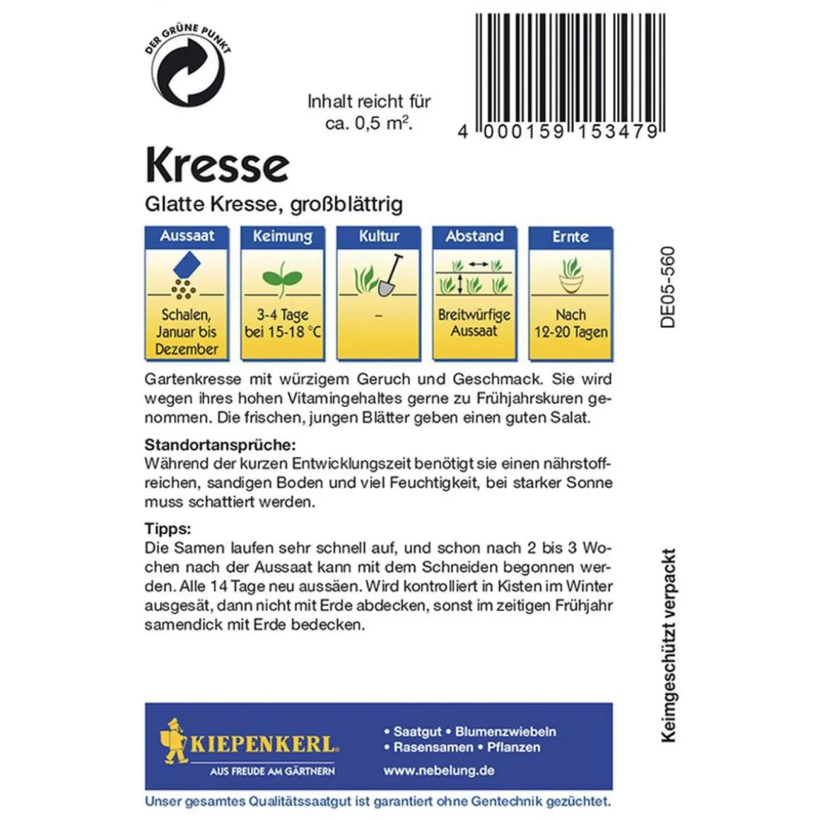 Kiepenkerl Kresse glatte großblättrig – Frischer Geschmack das ganze Jahr über