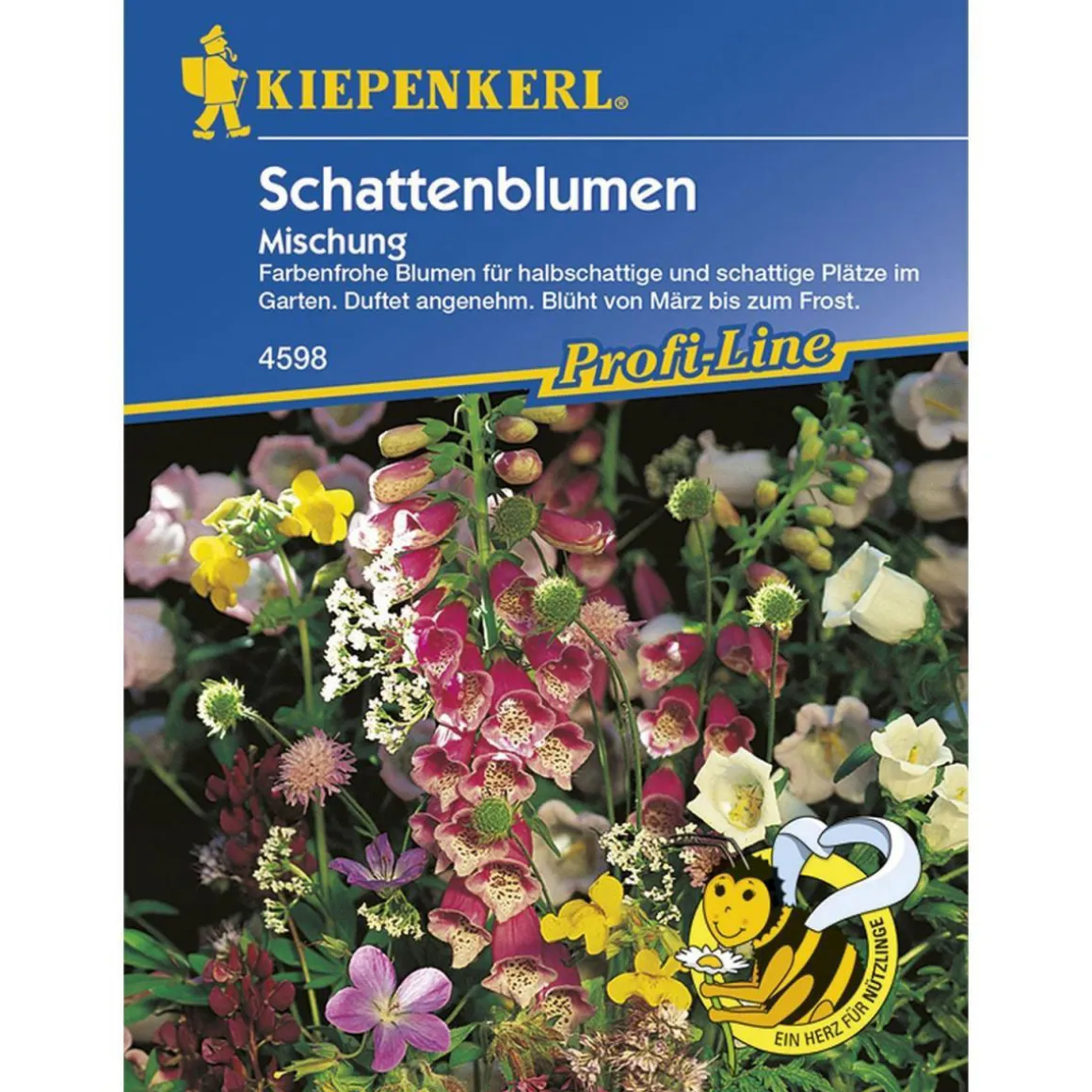 Mit der Kiepenkerl Schattenblumen Mischung Profi-Line zaubern Sie im Handumdrehen einen farbenfrohen Blickfang in Ihren schattigen Gartenbereich. Die mehrjährige Blumenmischung blüht vom Frühling bis zum Frost und bietet Bienen und anderen Nützlingen eine wichtige Nahrungsquelle. Bestellen Sie jetzt das Saatgut bei und freuen Sie sich schon bald auf eine üppige Blütenpracht!
