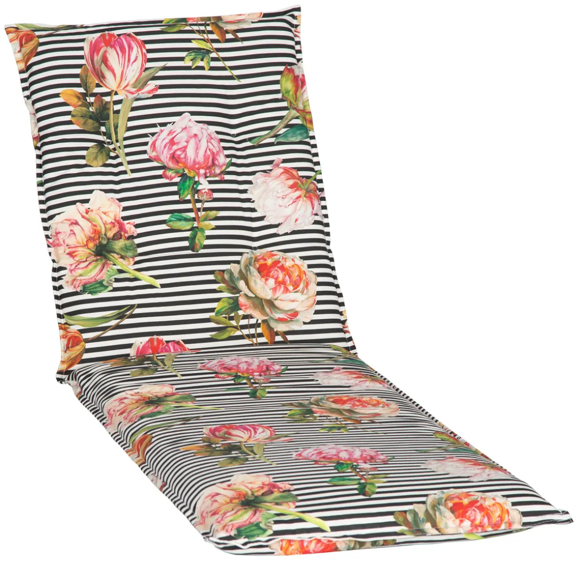 Sie träumen von einem Garten, der nicht nur ein Ort der Ruhe ist, sondern auch eine stilvolle Oase? Dann wird die Liegen-Saumauflage Toronto BE129 in rosé und pinken Pfingstrosen auf schwarz-weißen Streifen Ihr Herz höherschlagen lassen! Mit ihrem eleganten Design und ihrer hochwertigen Verarbeitung verwandelt sie jede Liege in einen Blickfang. Die Kombination aus zarten Blumenmustern und kontrastierenden Streifen sorgt für ein modernes und gleichzeitig romantisches Ambiente. Dank einer Polsterstärke von 8 cm bietet diese Auflage maximalen Komfort – perfekt für lange Sommertage im Freien.