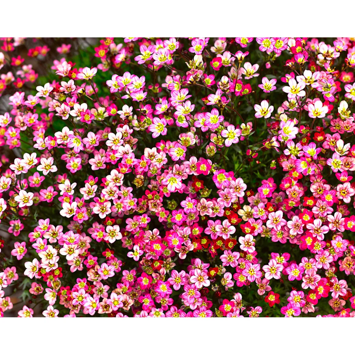 Verschiedene Sorten z.B. Schleifenblume, Blaukissen oder Steinbrech.