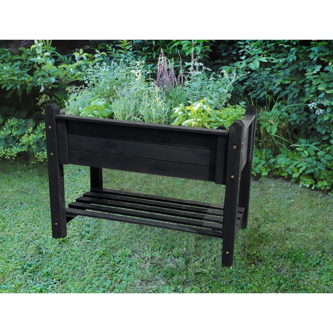 Als kleiner Vertreter dieser massiven Kräuterbeet-Serie bietet dieses im Farbton anthrazit gehaltene Hochbeet genügend Platz, um auf kleinem Raum Küchenkräuter und Pflanzen jeder Art zu züchten. Dank der 7 cm starken Beine macht dieses aus imprägniertem Kiefernholz gefertigte Kräuterbeet einen sehr stabilen Eindruck. Im Lieferumfang enthalten ist eine passende Pflanzfolie. Einfacher Selbstaufbau durch vormontierte Elemente.