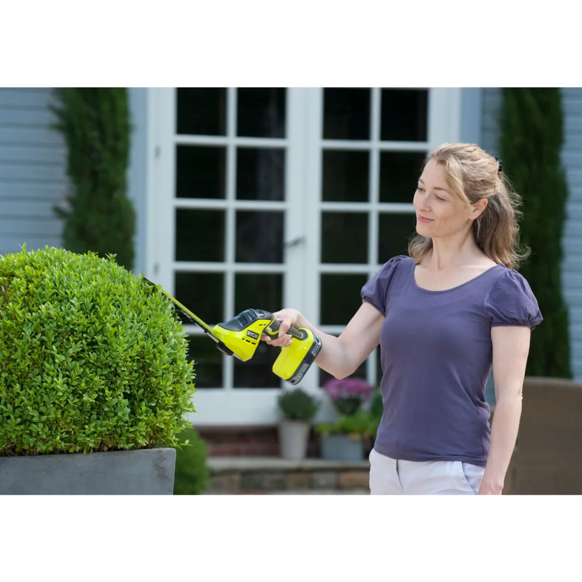 Die Ryobi Akku-Gras- und Strauchschere eignet sich ideal für alle Hobbygärtner, die Wert auf eine einfache Handhabung legen und ihre Grünflächen schnell in Form bringen möchten.