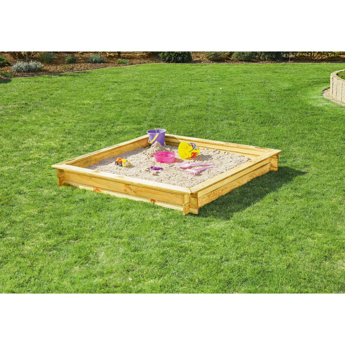 Wer seinen Kindern eine Freude machen möchte und ihnen gleichzeitig die Möglichkeit geben will, draußen zu spielen, trifft mit dem SandkastenLisa die richtige Wahl. Das Modell aus robustem Kiefernholz überzeugt nicht nur durch seine natürliche Optik, sondern auch durch seine Größe und Füllmenge. So steht einem unbeschwerten Spielspaß im eigenen Garten nichts mehr im Wege.