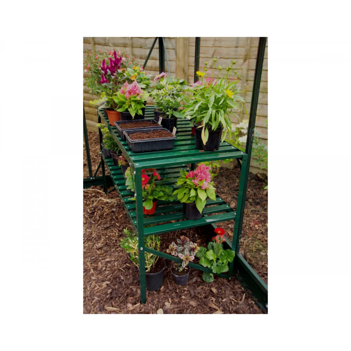 Der Vitavia Alu-Tisch mit 2 Ablagen eignet sich ideal für alle Gartenliebhaber, die auf der Suche nach einem praktischen und stilvollen Möbelstück sind. Ob als Arbeitsfläche beim Gärtnern oder als dekoratives Element im Außenbereich – dieser Tisch überzeugt durch seine vielseitige Einsetzbarkeit.