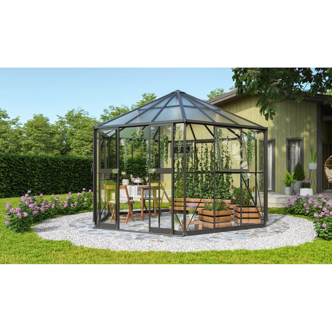 Das Vitavia Gewächshaus Pi eignet sich ideal für alle Hobbygärtner und Gartenliebhaber, die auf der Suche nach einem geräumigen und robusten Freistehgewächshaus sind. Es bietet ausreichend Platz für alle Arten von Pflanzen und Gemüse.