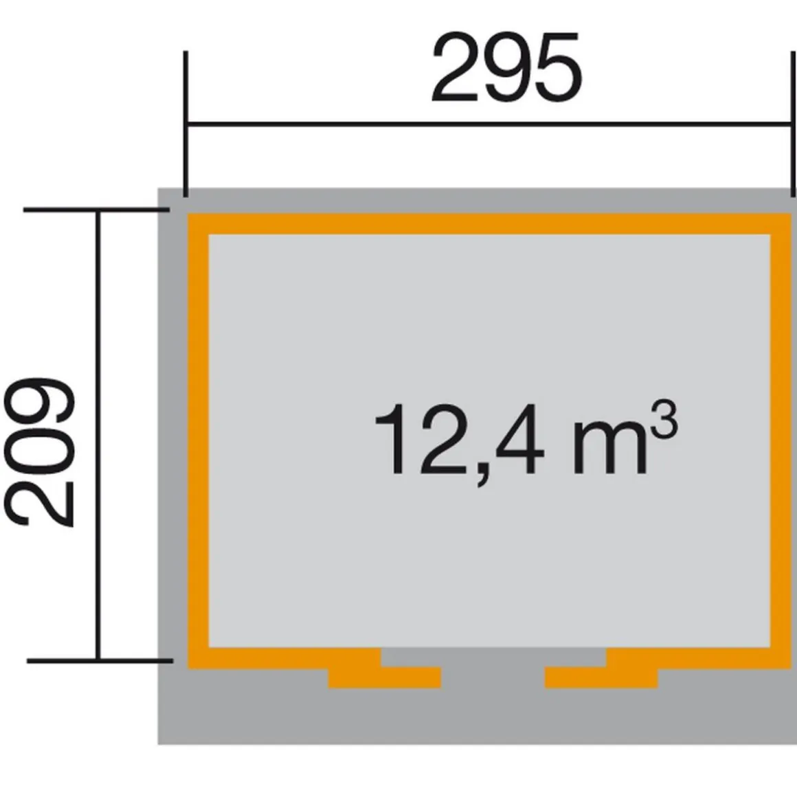 - Außentiefe inkl. Dachüberstand: 249 cm