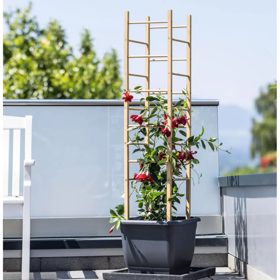 Der Sonne entgegen Um hochwachsende Blütenpracht oder selbstgezogenes Gemüse im eigenen Garten genießen zu können, greift man am besten zu einer stabilen Rankhilfe wie dem Holz Rankturm von Windhager. Der praktische Rankturm aus FSC-Kiefernholz unterstützt kletterfreudige Blumen sowie Gemüsepflanzen beim geraden Wachstum in die Höhe. Schnell und einfach aufgebaut (Rundstäbe in vorgebohrte Löcher stecken, Turm mit zugespitzten Füßen in der Erde platzieren), lässt sich der Rankturm freistehend in Beeten oder Pflanztöpfen nutzen. Unser Tipp: Für einen individuellen Look und noch besseren Schutz vor Nässe und Verwitterung kann der Rankturm lackiert werden.